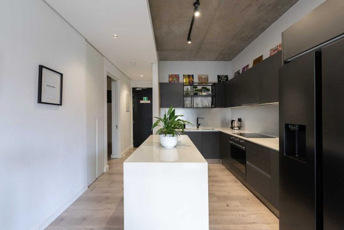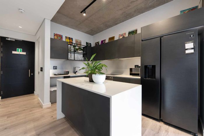 Vibrant De Waterkant living steps from cafes, galleries and a 5-minute walk to V&A Waterfront; industrial-chic apartment with underfloor-heated bathroom — two beds, two baths, two parking.