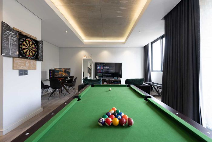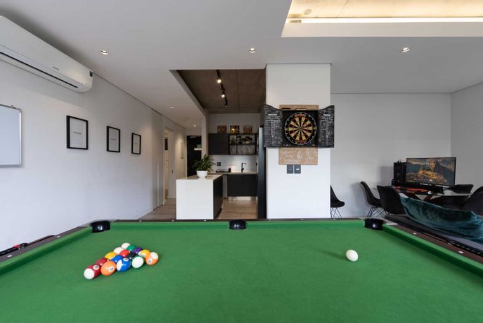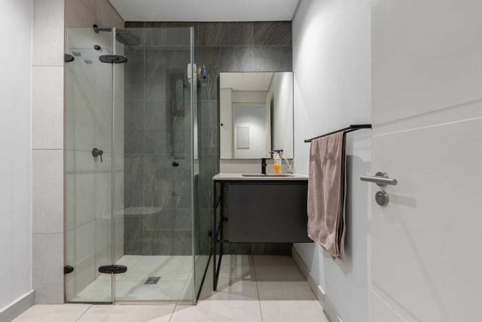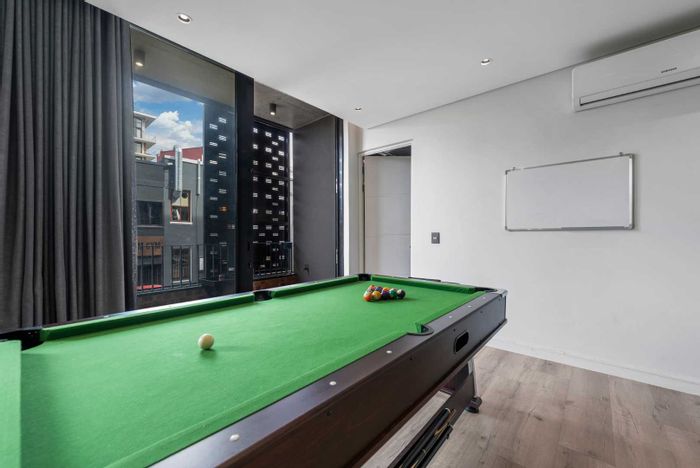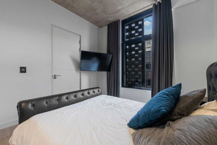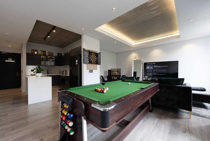 One-bedroom apartment in SIX complex, Zonnebloem. Includes patio, amenities like pool and gym, plus 24-hour security.