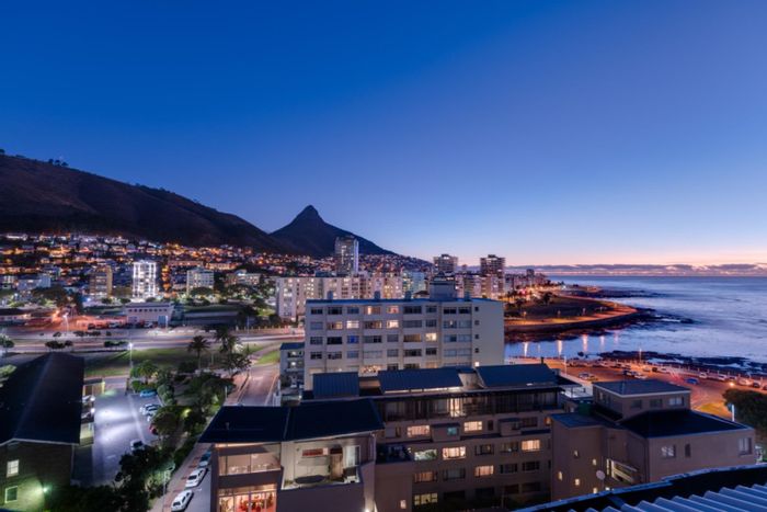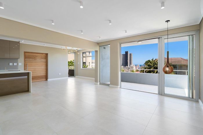 Duplex apartment with open-plan living, two bedrooms, balconies, communal pool, and close to Seapoint shops and restaurants.