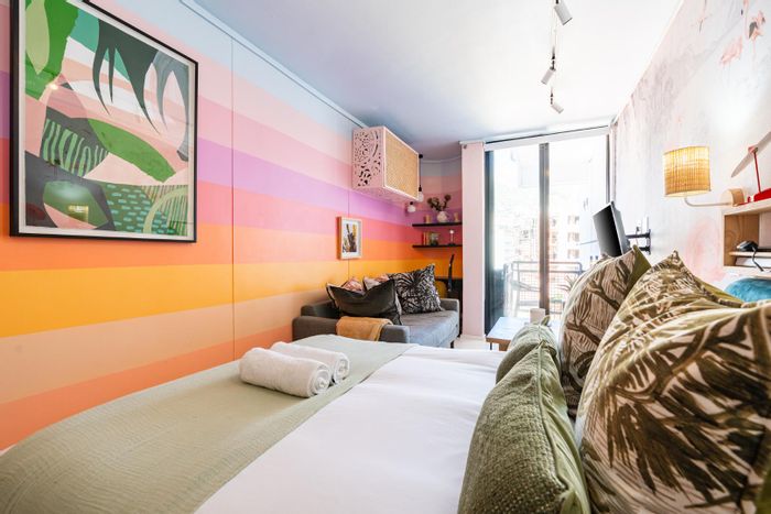 Cozy studio apartment in Cape Town CBD with pool, laundry, garden access, near Company Gardens and city center.