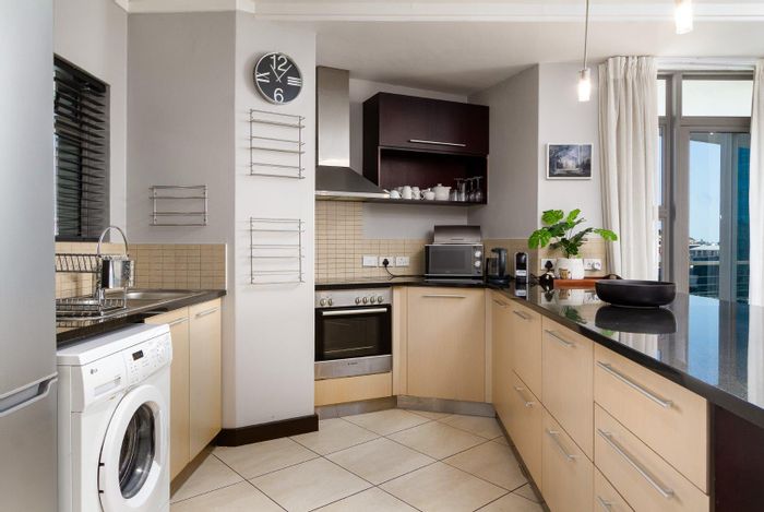 Two-bedroom, two-bathroom apartment with balconies, parking, gym, and pool near V&A Waterfront and city amenities. Ideal investment.