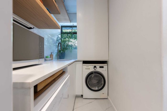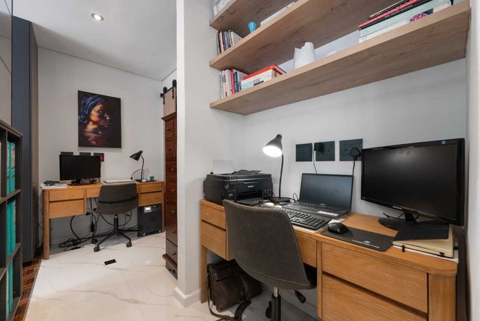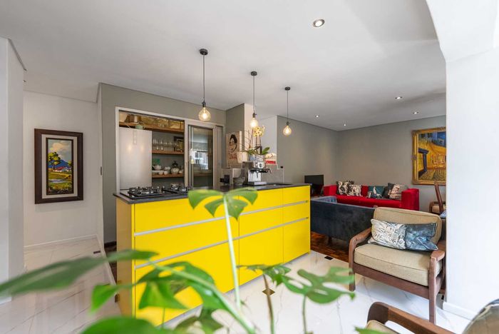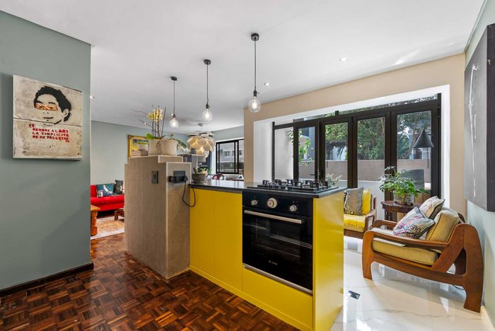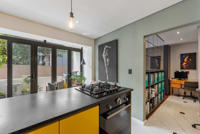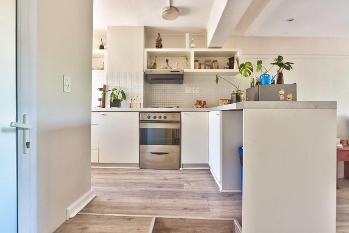 Renovated 92sqm apartment in Tamboerskloof, featuring spacious living, gourmet kitchen, study area, balcony, and secure parking.