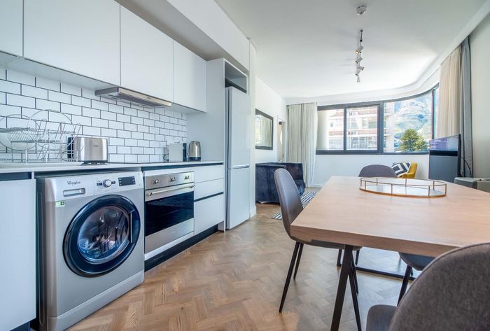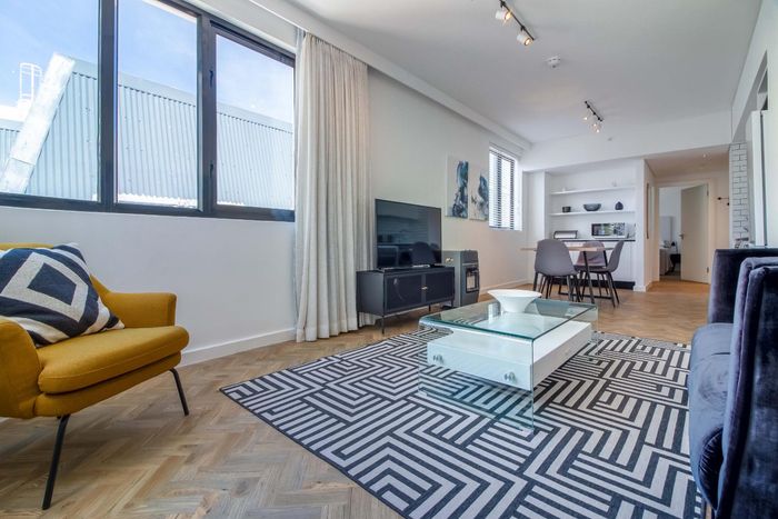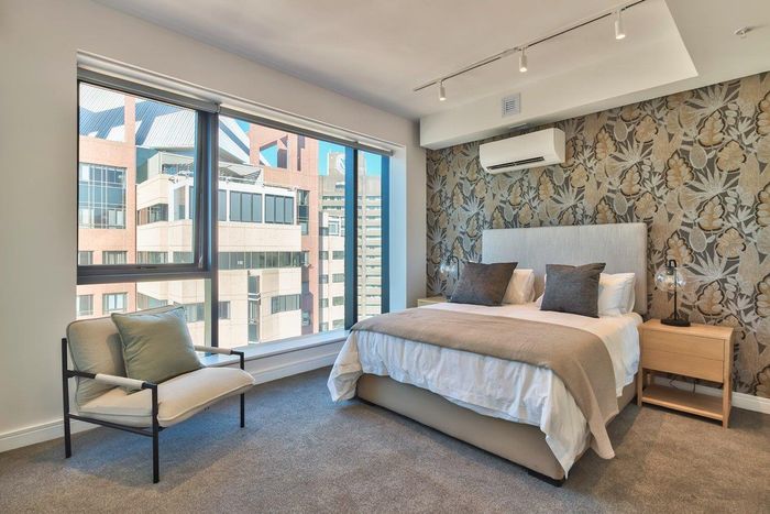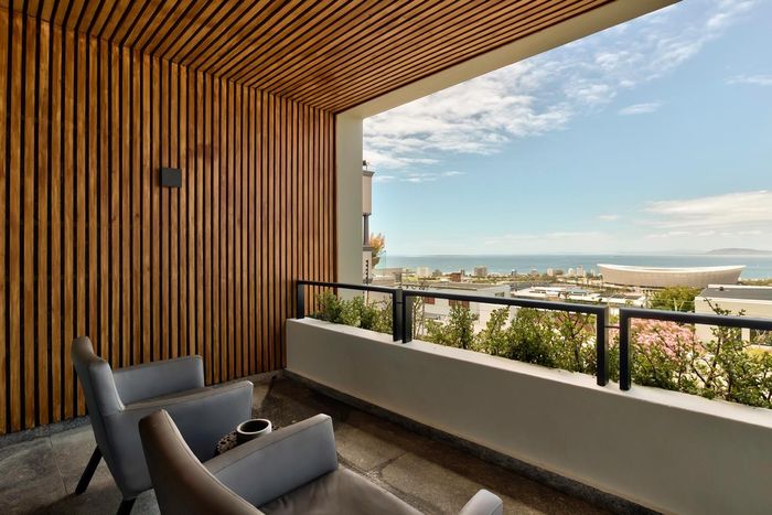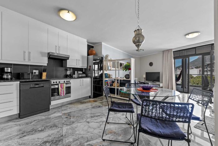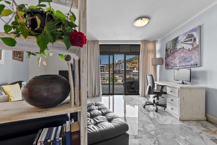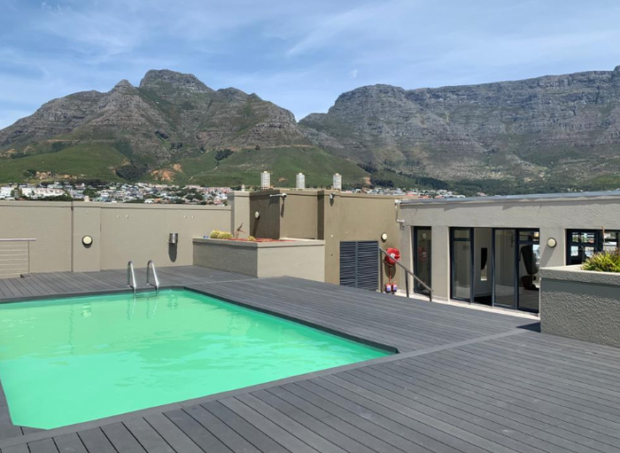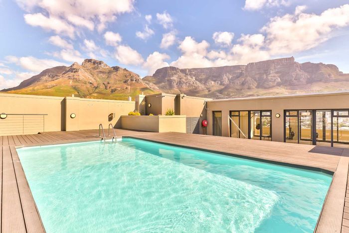 City-centre living steps from Loop Street's nightlife and galleries, with private roof terrace, pool access and sweeping Table Mountain and ocean views. Two-bedroom, 2.5-bath, two parking.