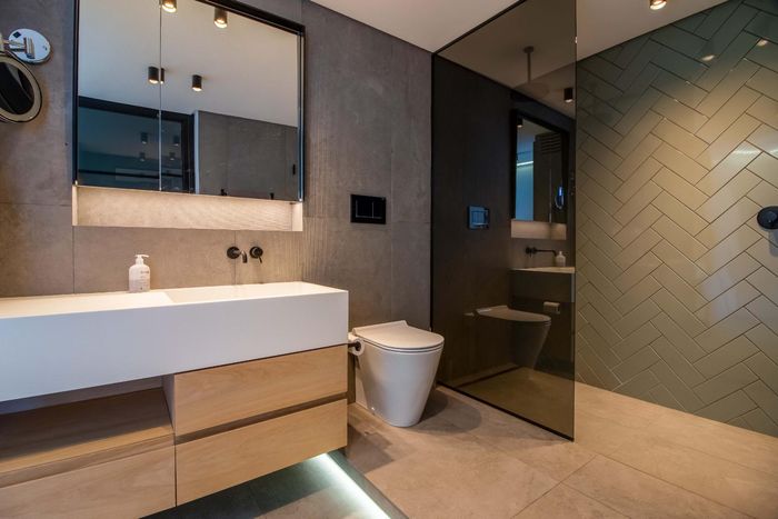 North-facing 3-bedroom penthouse with 3.5 bathrooms, 267sqm plus 40sqm deck, double garage, and office space.