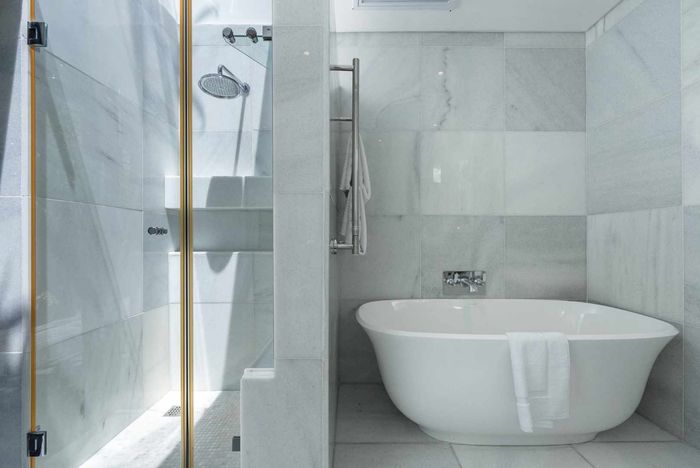 Townhouse in Sea Point features a garden, heated plunge pool, spacious living areas, and three bedrooms with en-suites.