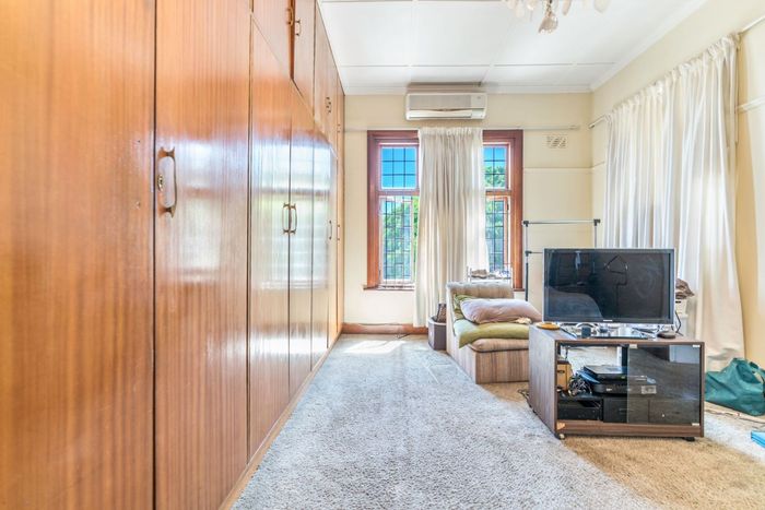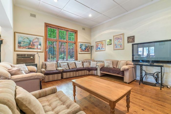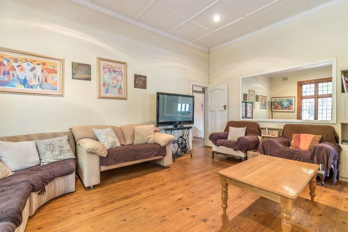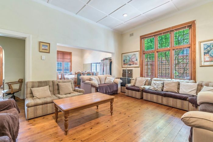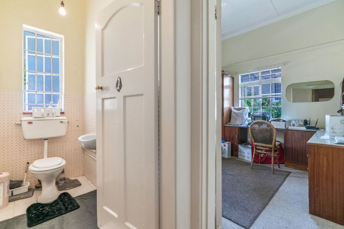 Kerb-appeal on Kensington Crescent overlooking Leeuwenhof — impeccably restored character home with private garden, pool, antique Argentine pharmacy-cabinet kitchen, guest cottage; 4 beds, 3 baths, 2 garages.