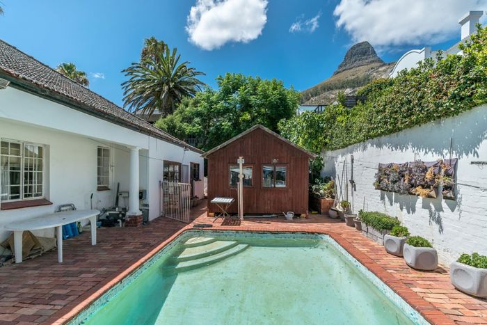 Entertainer's haven on Kensington Crescent overlooking Leeuwenhof and Lions Head, with landscaped garden, pool, antique Argentine pharmacy cabinets, covered indoor/outdoor lounge and guest cottage — 4 beds, 3 baths, double garage.