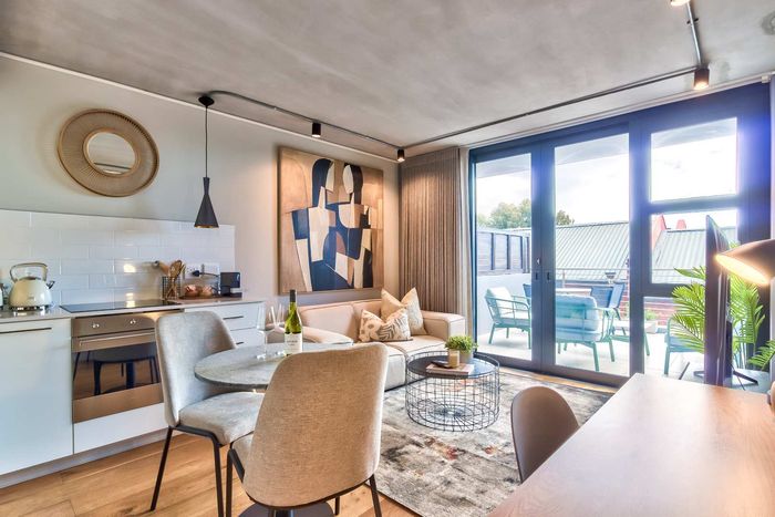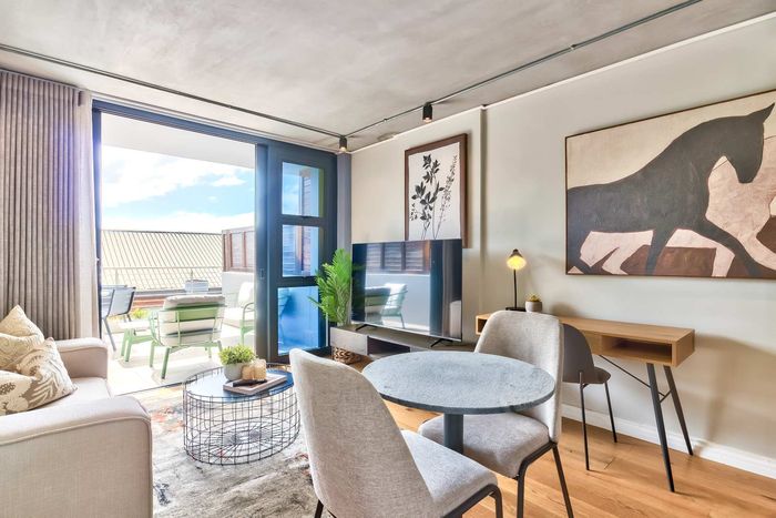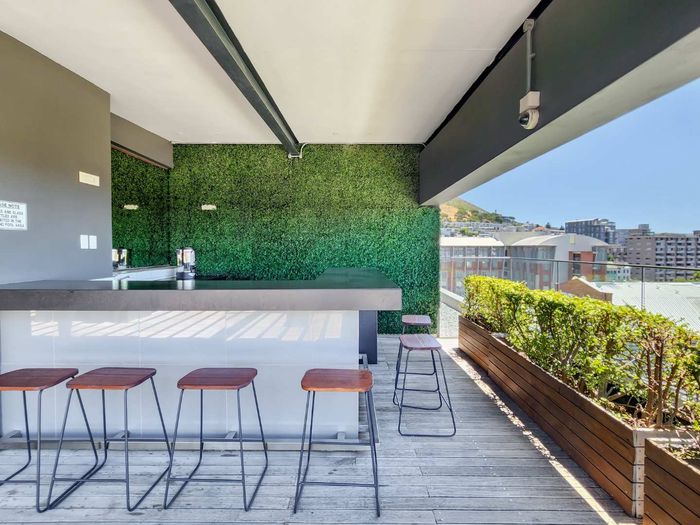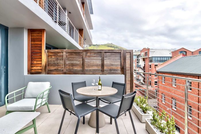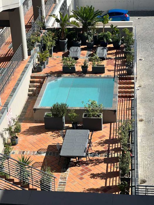 Vibrant De Waterkant city lifestyle—walk to cafés and the V&A Waterfront. Private terrace and rooftop pool with panoramic views; one-bedroom, one-bath with covered parking.