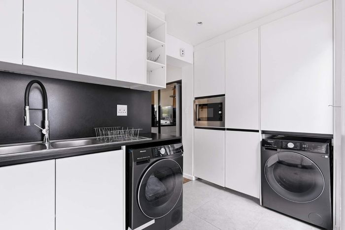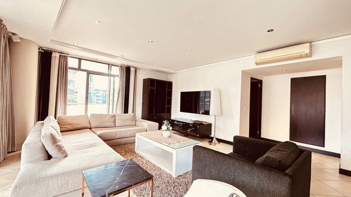 Sunlit Sea Point apartment ideal for coastal entertaining, walking distance to beachfront and Main Road, with wrap-around terraces, splash pool, three en-suite bedrooms, 3.5 baths and two covered parking bays.