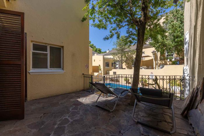 Enjoy vibrant city living in St Martini Gardens, steps from the historic Company Gardens; studio offers a balcony with tree-lined views, separate bedroom area, communal gardens, pool, Airbnb-friendly.