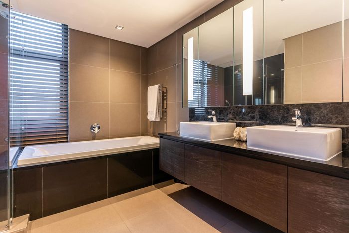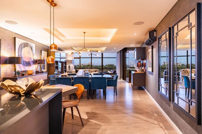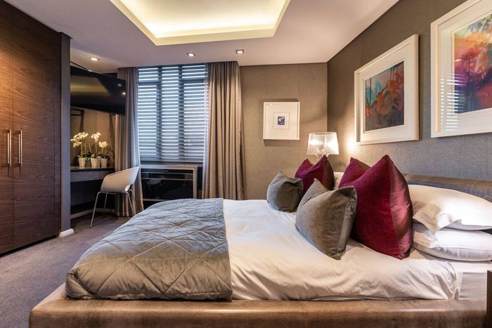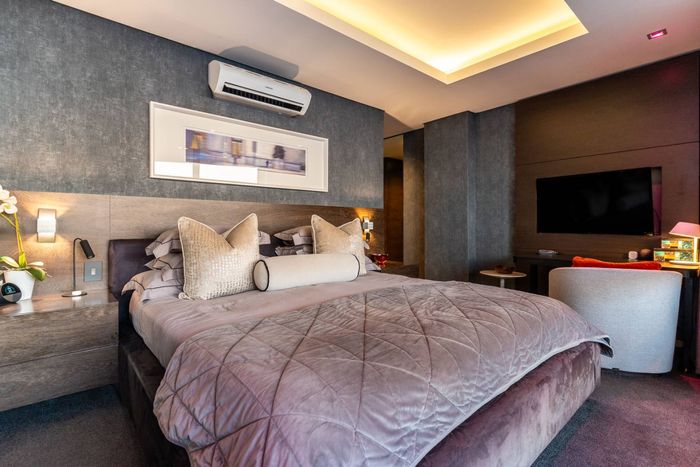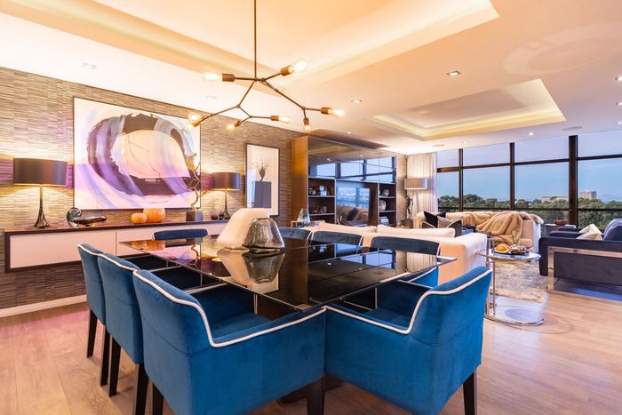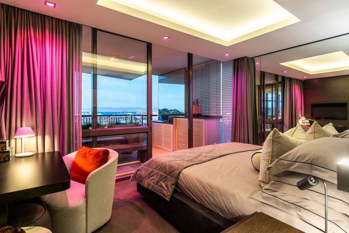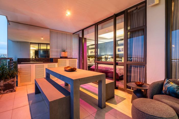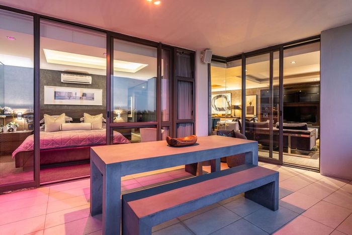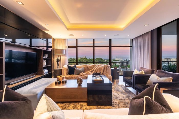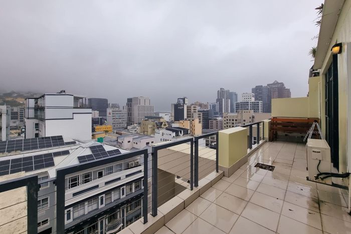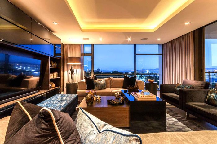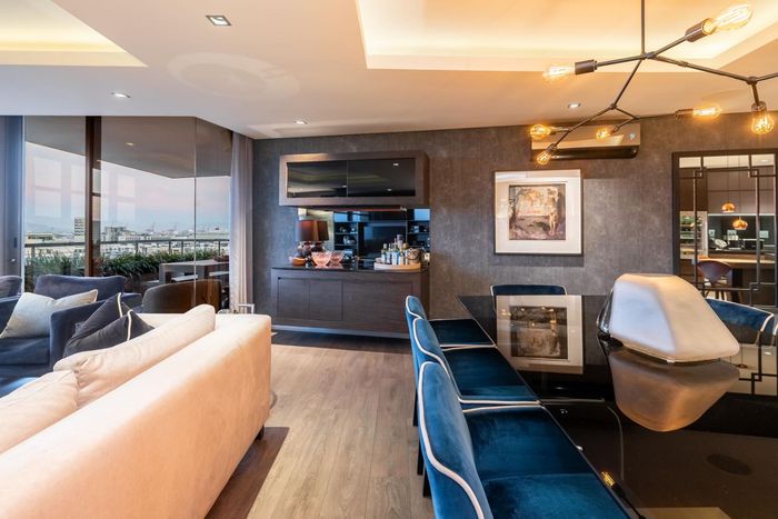 Entertainer's rooftop penthouse with panoramic city and Table Mountain views, private dip pool and grand entertainment room — three bedrooms, four baths, two secure undercover bays.