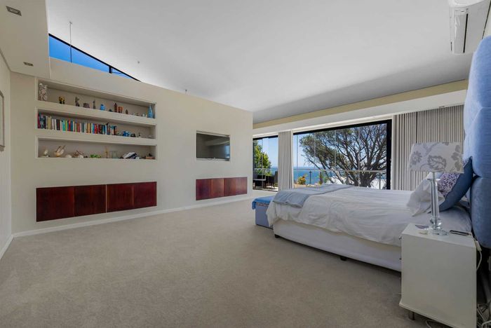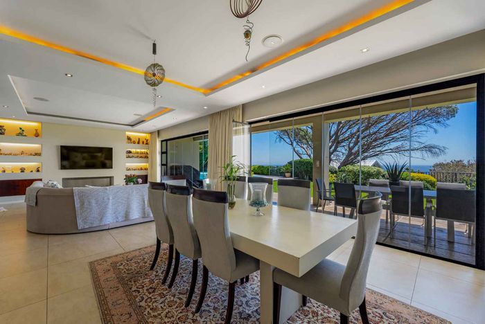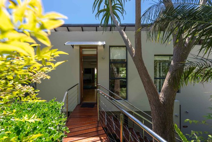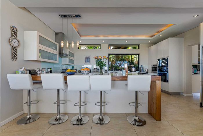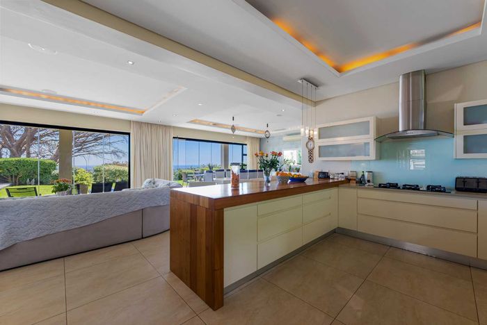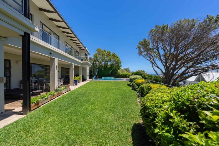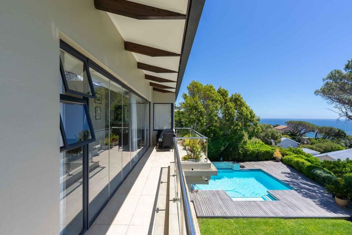Seaside entertaining and relaxed living in an elevated home, a short walk from the beach, with heated saltwater pool, built-in braai and sea/mountain views; five beds, five baths, double garage.