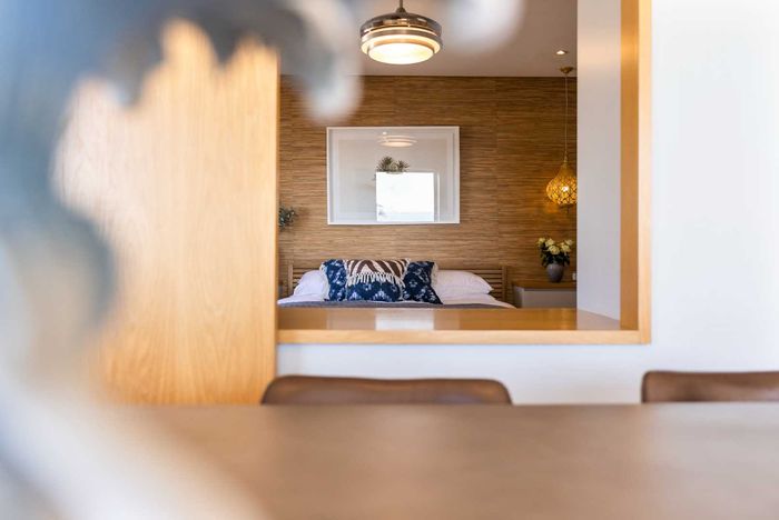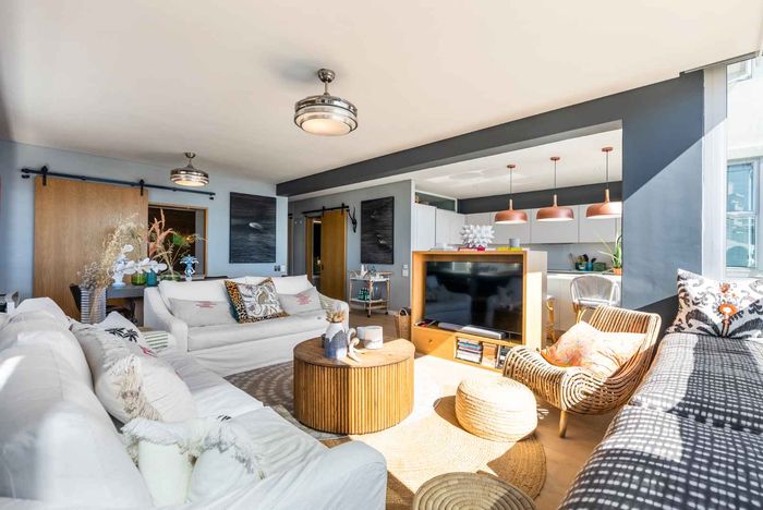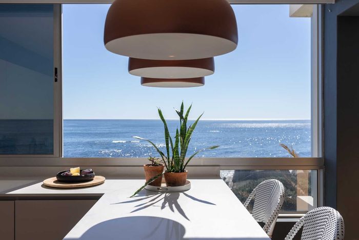 Seaside living steps from Mouille Point Mile's cafés and promenade, flexible dual-unit apartment with self-contained one-bedroom for guests or rental — three bedrooms, two bathrooms.