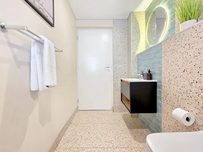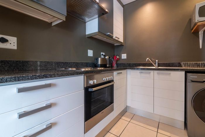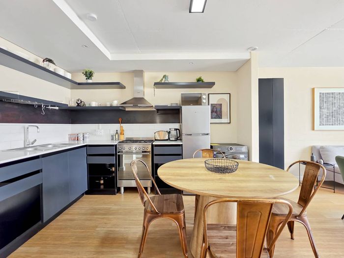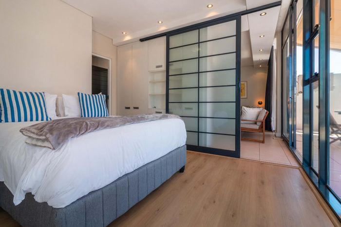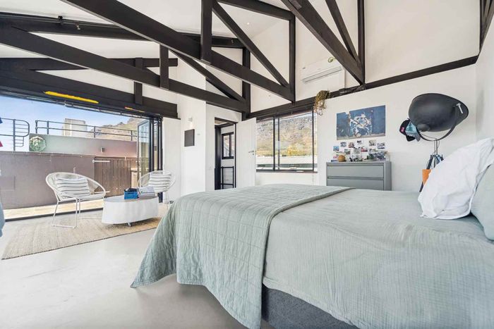 Experience De Waterkant living with Table Mountain views from your private balcony — modern Airbnb-ready loft with communal pool, one covered parking, one bedroom and one bathroom.