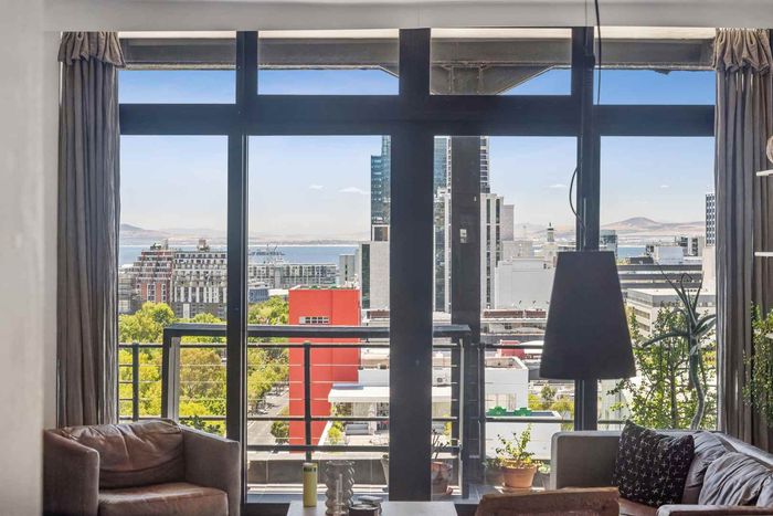 City-centre living with panoramic Table Mountain, Lion's Head and Signal Hill views from an open balcony; industrial-chic studio with study nook, storeroom, one bath, two parking bays.