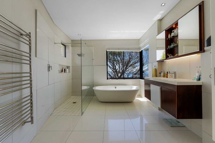 Entertain effortlessly in Camps Bay with panoramic Atlantic views, garden and solar-heated pool; modern chef’s kitchen, separate fitness studio and two self-catering suites — six bedrooms, seven baths.