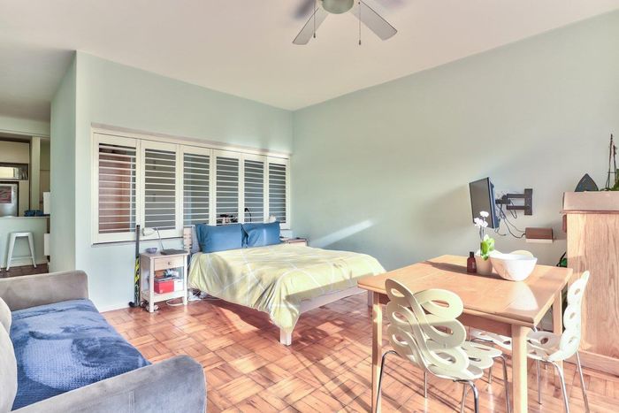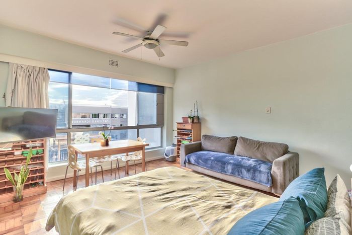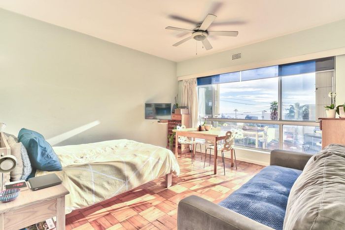 One-bedroom apartment in Sea Point, featuring high ceilings, natural light, and pet-friendly options. Parking available for rent.