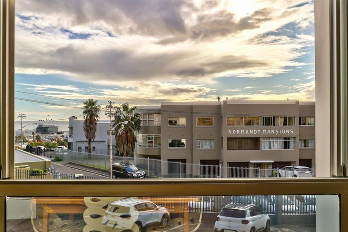 North-facing 2-bedroom, 1-bathroom top-floor apartment in Sea Point, 85 sqm with secure parking. Vacant from May 2025.