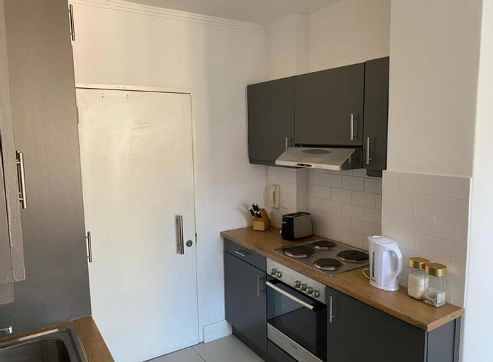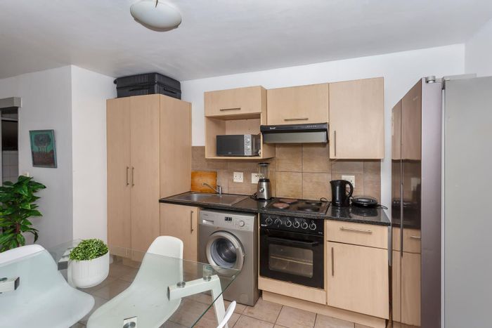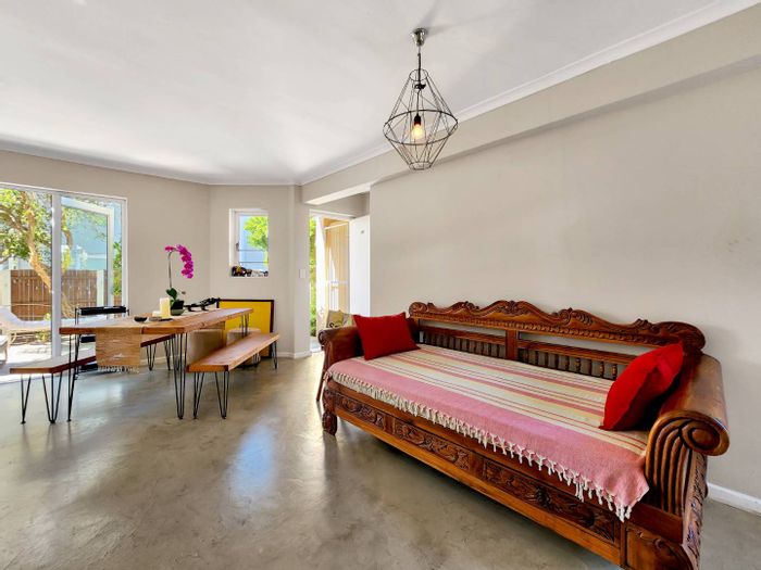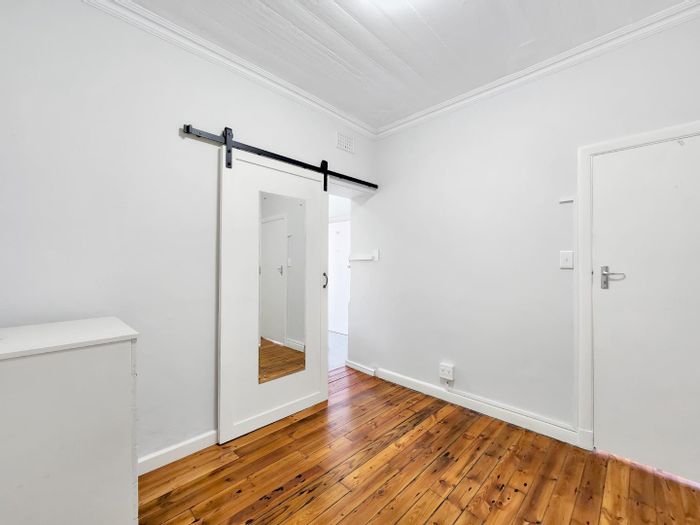 Steps from the City Centre and CPUT, vibrant Zonnebloem offers a renovated ground-floor apartment with high ceilings, wooden floors, open-plan kitchen, pool, braai, 24-hour security.