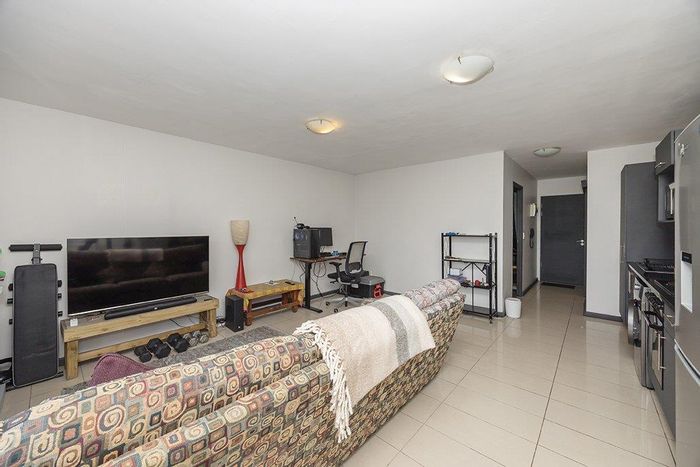 Private protected patio and access to pool, braai and gym in the secure SIX complex — compact 33 m² apartment needing TLC, with bathroom and covered parking.