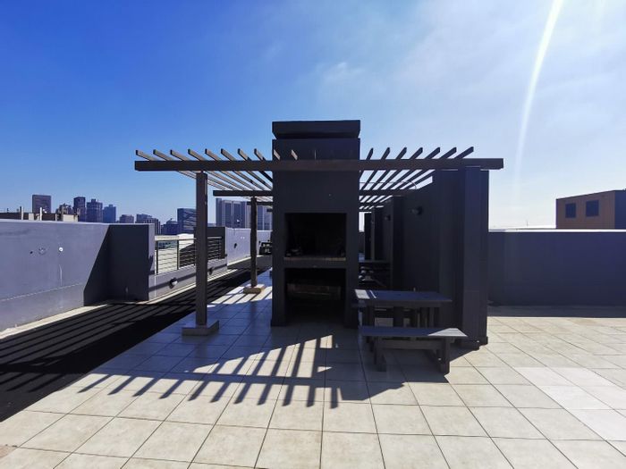One-bedroom apartment in SIX complex, Zonnebloem. Includes patio, amenities like pool and gym, plus 24-hour security.