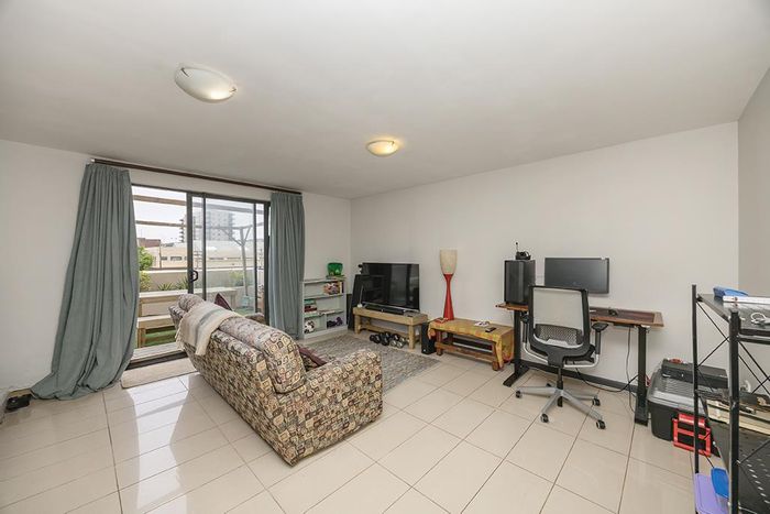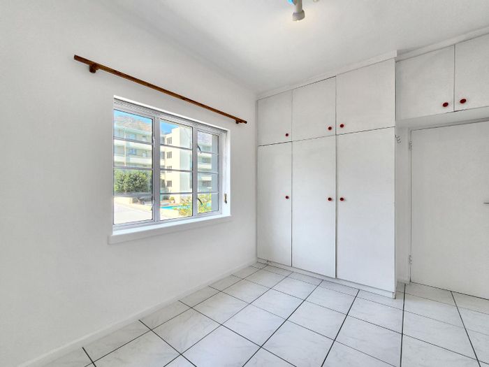Relaxed central city living with 24-hour security, private street entrance and enclosed courtyard perfect for braai, plus communal pool and secure parking — two-bedroom, one-bath apartment.