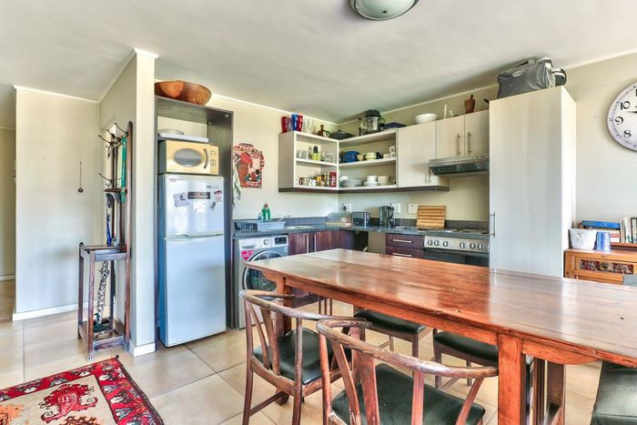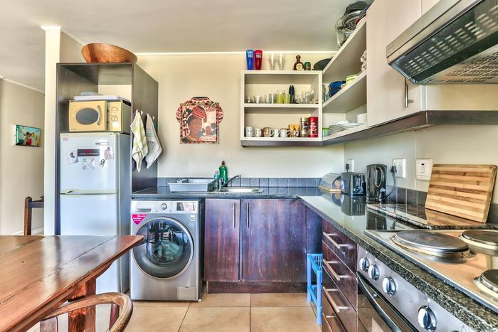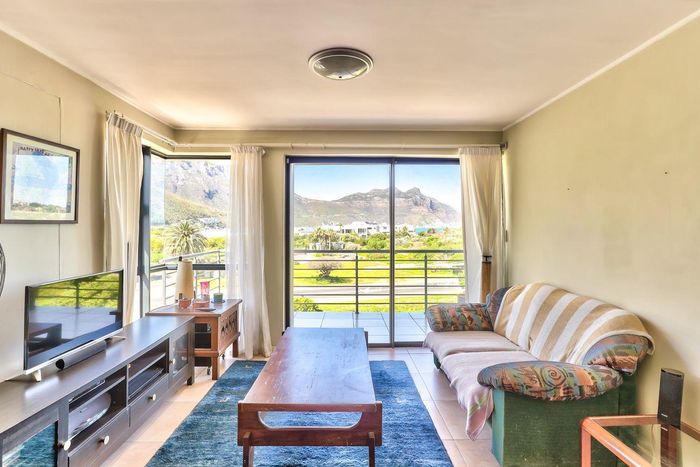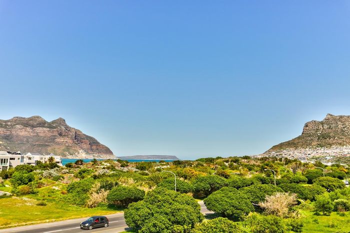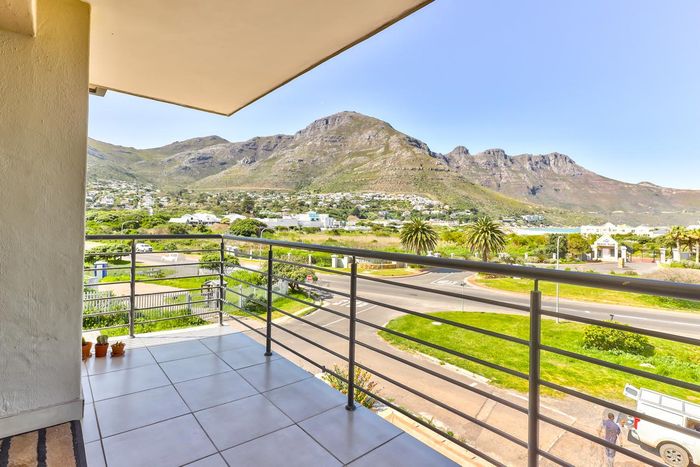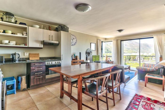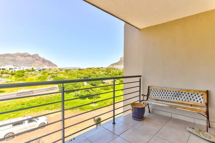 Coastal lock-up-and-go lifestyle steps from Hout Bay beach, shops and restaurants — light two-level apartment with modern kitchen, balcony overlooking greenery, three bedrooms, two bathrooms and garage