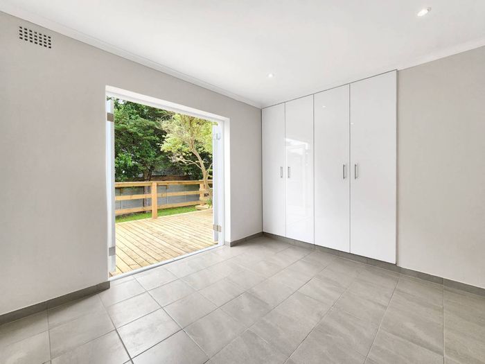 North-facing cottage in Kronendal Retirement Village, moments from the on-site clinic and communal gardens; high ceilings and sheltered patio opening onto a private sunlit garden. Two en-suite bedrooms, garage.