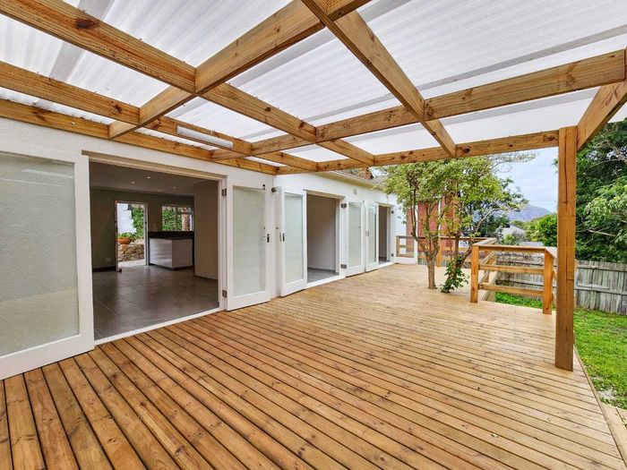 Entertainer's dream in North Oaks, Overkloof Hout Bay — effortless indoor-outdoor living with a 60sqm covered patio and sunken firepit garden. Four en-suite bedrooms, double garage.