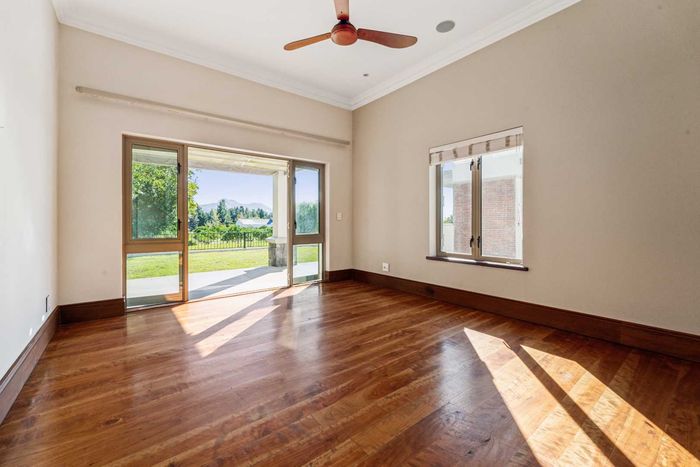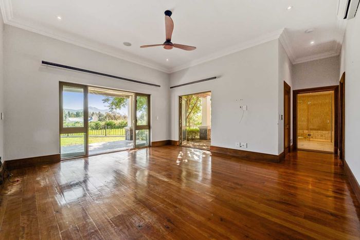 Wine-country living in Val de Vie, Cape Winelands — north-facing single-storey home overlooking mountains and farm, ideal for entertaining with private cellar and four en-suite bedrooms.