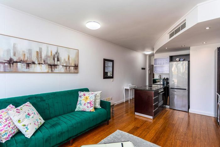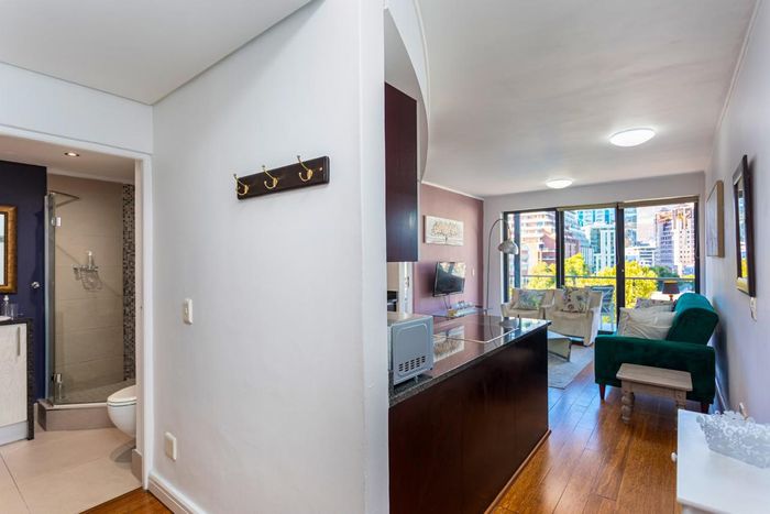 Embrace vibrant city living with mountain views at the crossroads of De Waterkant, the CBD and colorful Bo-Kaap; furnished studio offers open-plan comfort, one bathroom and secure parking.