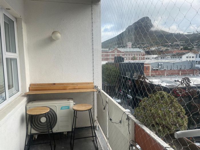 Sunny, furnished 5th-floor apartment overlooking vibrant Long Street, steps from Kloof Street and the CBD, balcony, air-con, fibre included, secure building. One bedroom, one bath.