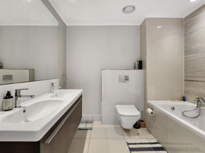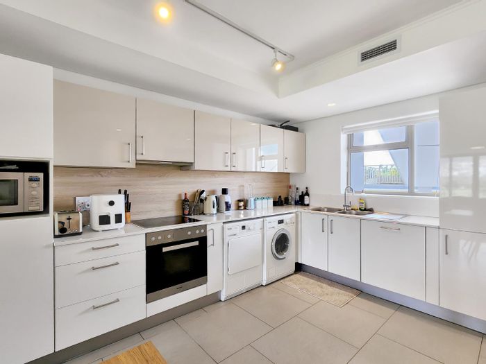 City-edge waterfront living within walking distance to the V&A Waterfront and Oranjezicht market; panoramic views of Signal Hill, open-plan Miele kitchen, underfloor heating, two bedrooms, two bathrooms, secure double parking.