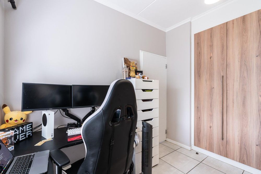 The space seamlessly flows onto a covered patio, perfect for relaxing or entertaining. This outdoor area is not only well-maintained but also features a braai area, designed to shield you from the wind while you enjoy outdoor gatherings.