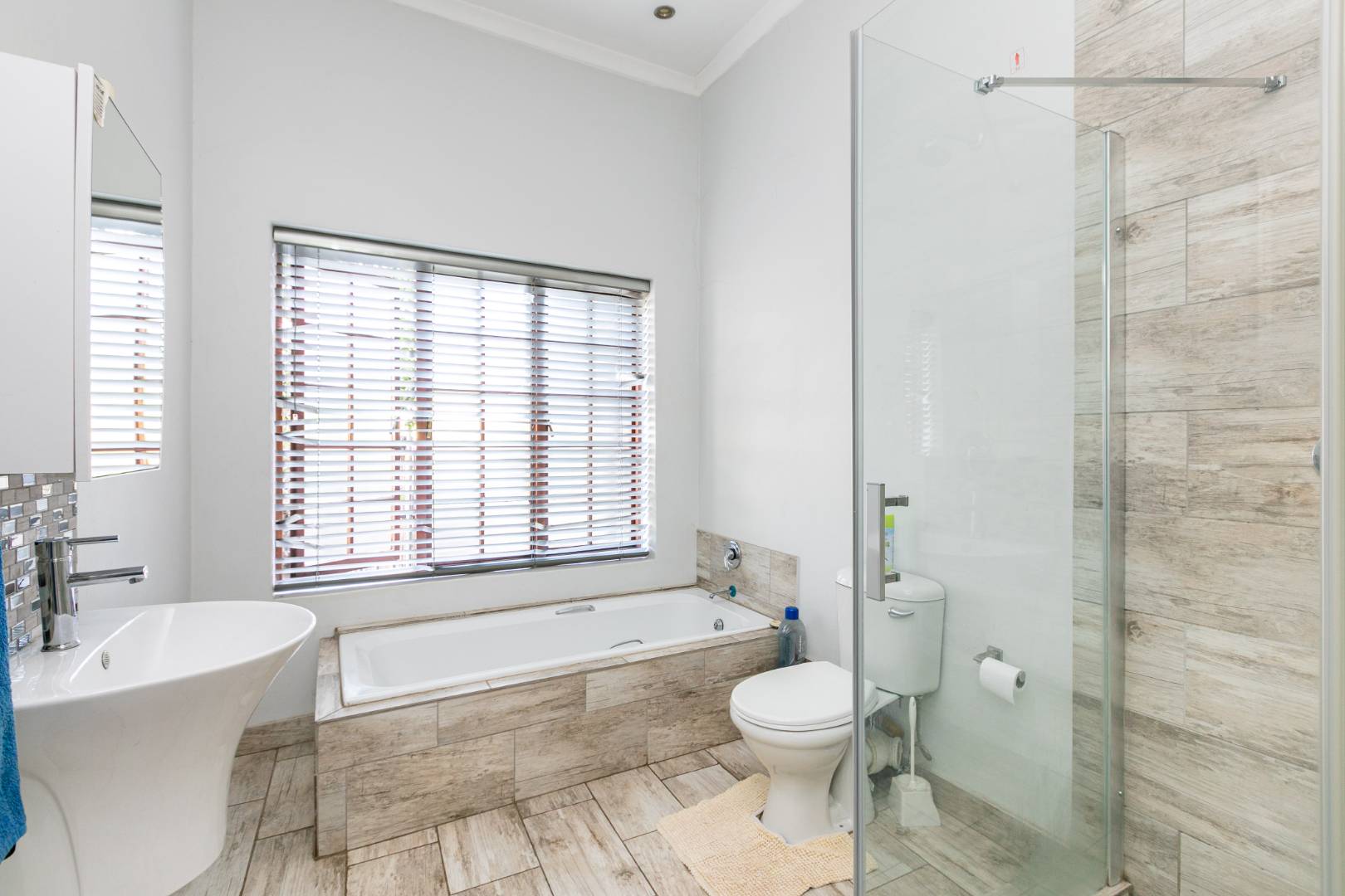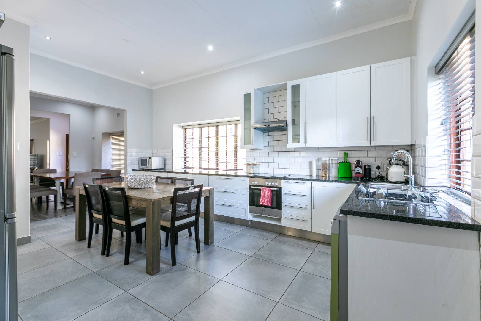 The outside space is ideal for entertaining, including a built-in braai, lush garden, sparkling swimming pool and spacious paved patio.