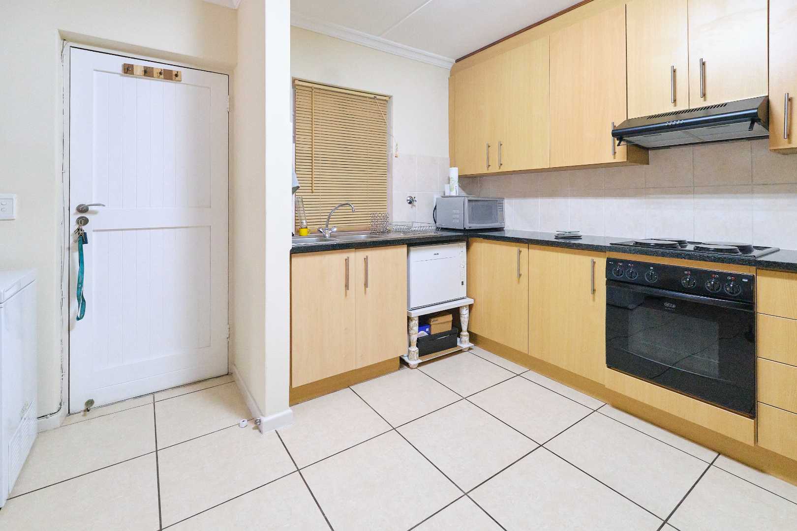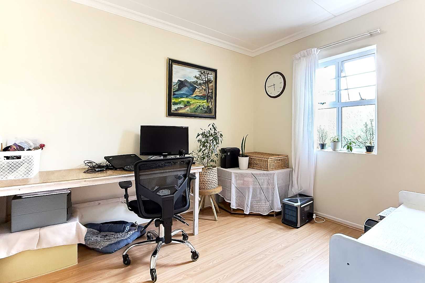 This immaculate residence features two spacious bedrooms, both adorned with elegant wooden floors and equipped with built-in cupboards. The main bedroom offers a serene escape, opening onto a charming sunroom where you can enjoy your morning coffee while overlooking the lush garden. The main en suite bathroom is designed with a modern shower, toilet, and basin for your convenience, while the second bathroom includes a bath, toilet, and basin.