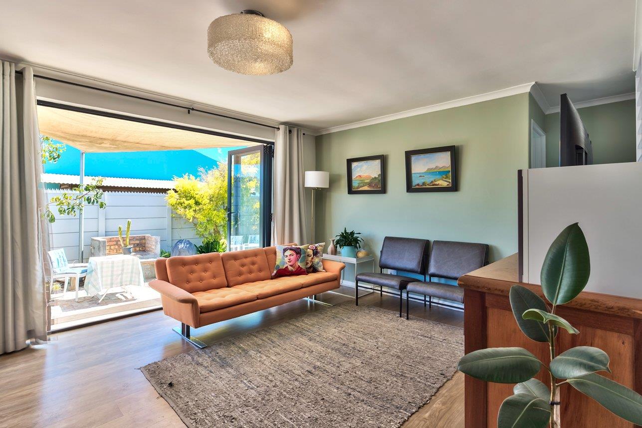 Inviting lounge - with laminated floors and sliding folding doors leading to a gorgeous garden.