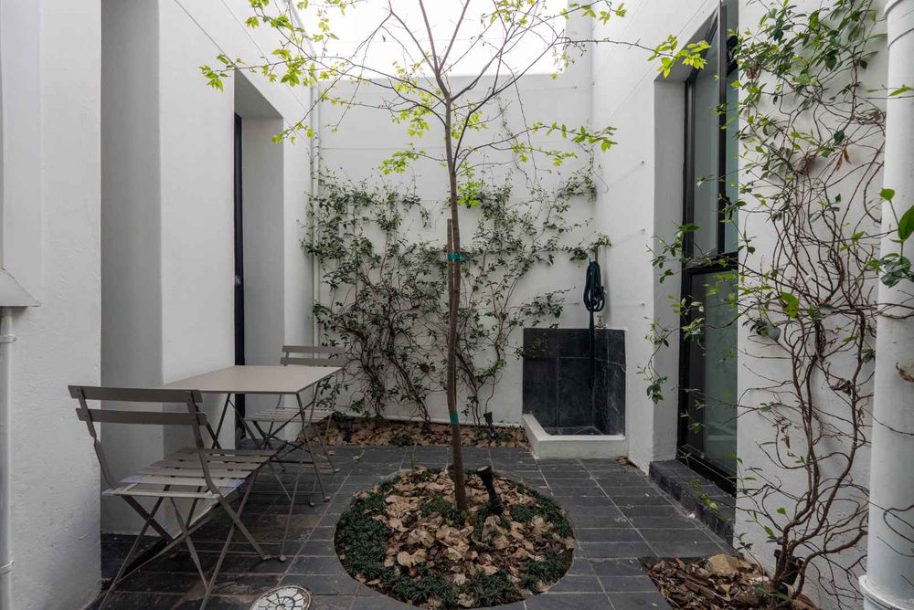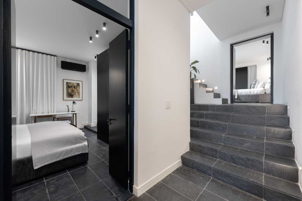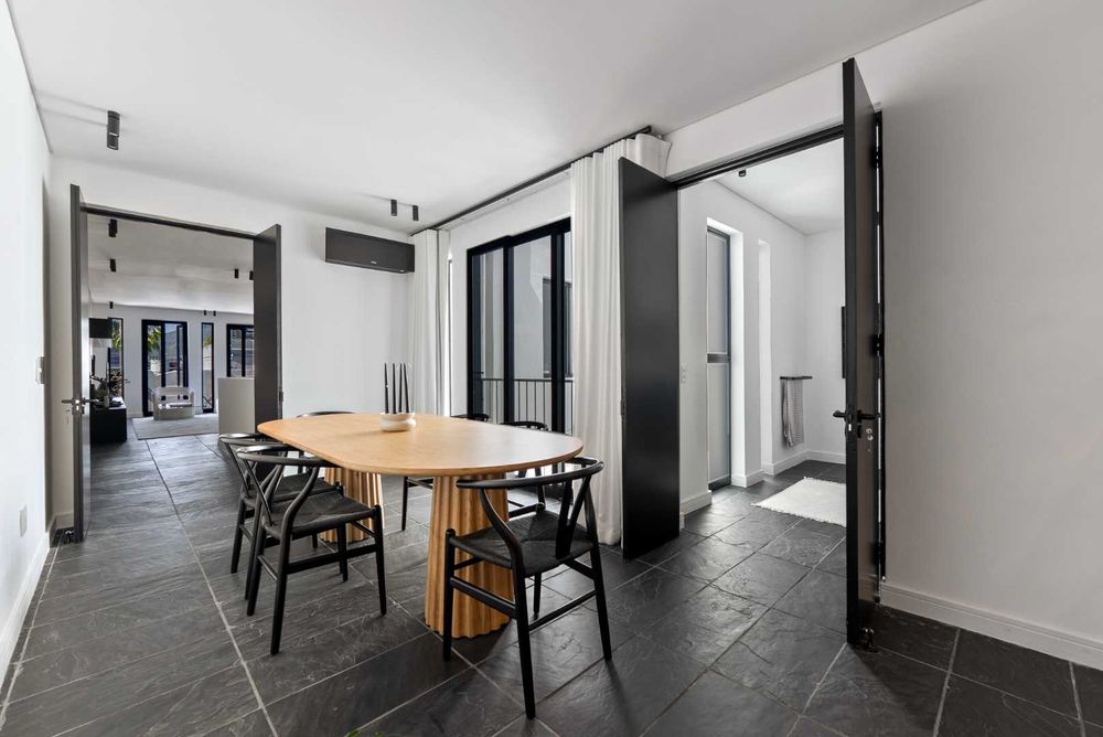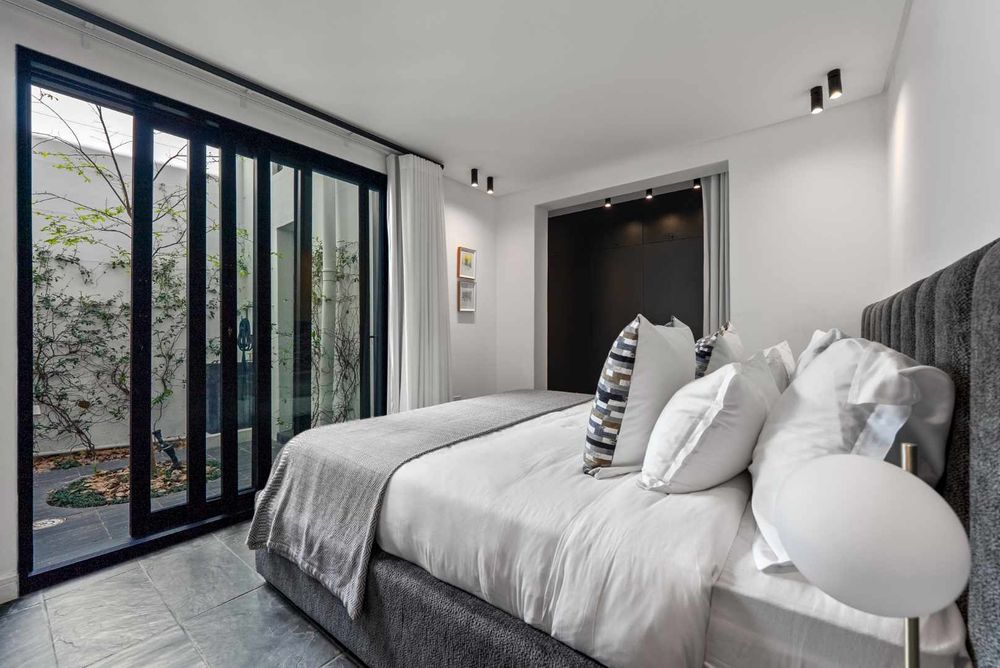 A tranquil inner courtyard brings light and calm into the living spaces, while the first-floor terrace offers breathtaking views of the city and Table Mountain, perfect for relaxing or entertaining.