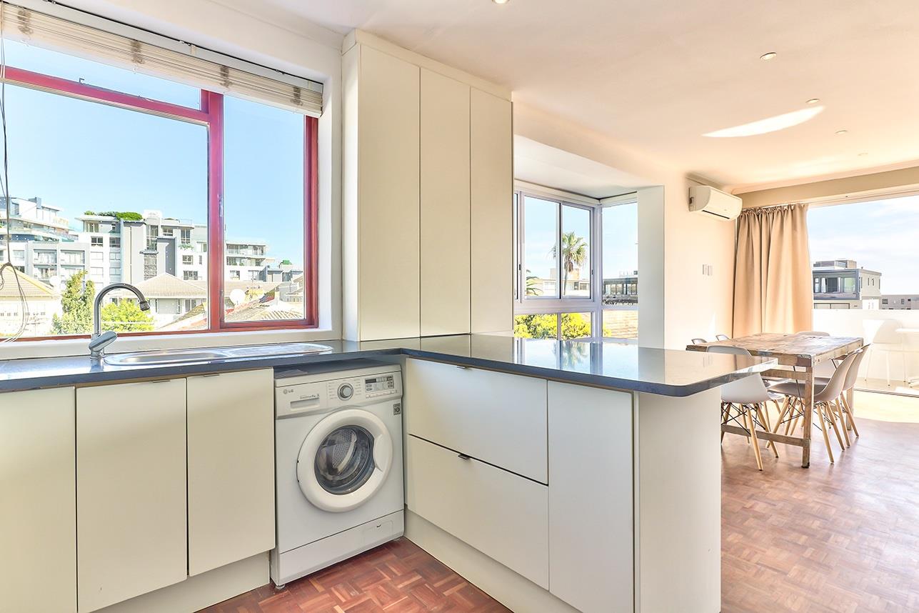 This top floor apartment is situated in a small block on Kloof Road within walking distance to Sea Point's main attractions, the ever so popular Promenade and the area's beautiful surroundings.