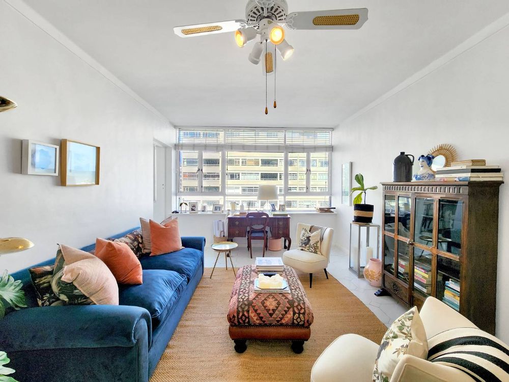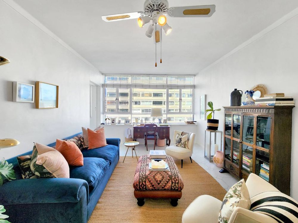 This side facing 2-bedroom, 2-bathroom apartment offers abundant sunlight and partial sea views.