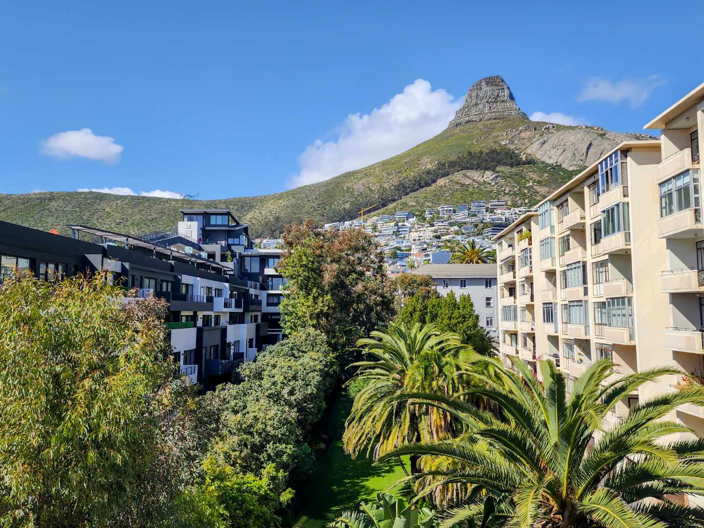Studio apartment in secure complex - views over lush garden area and up towards Lions Head.