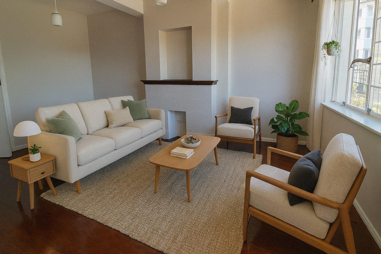 Disclaimer: Pictures have been enhanced with AI to show how the apartment can be styled.