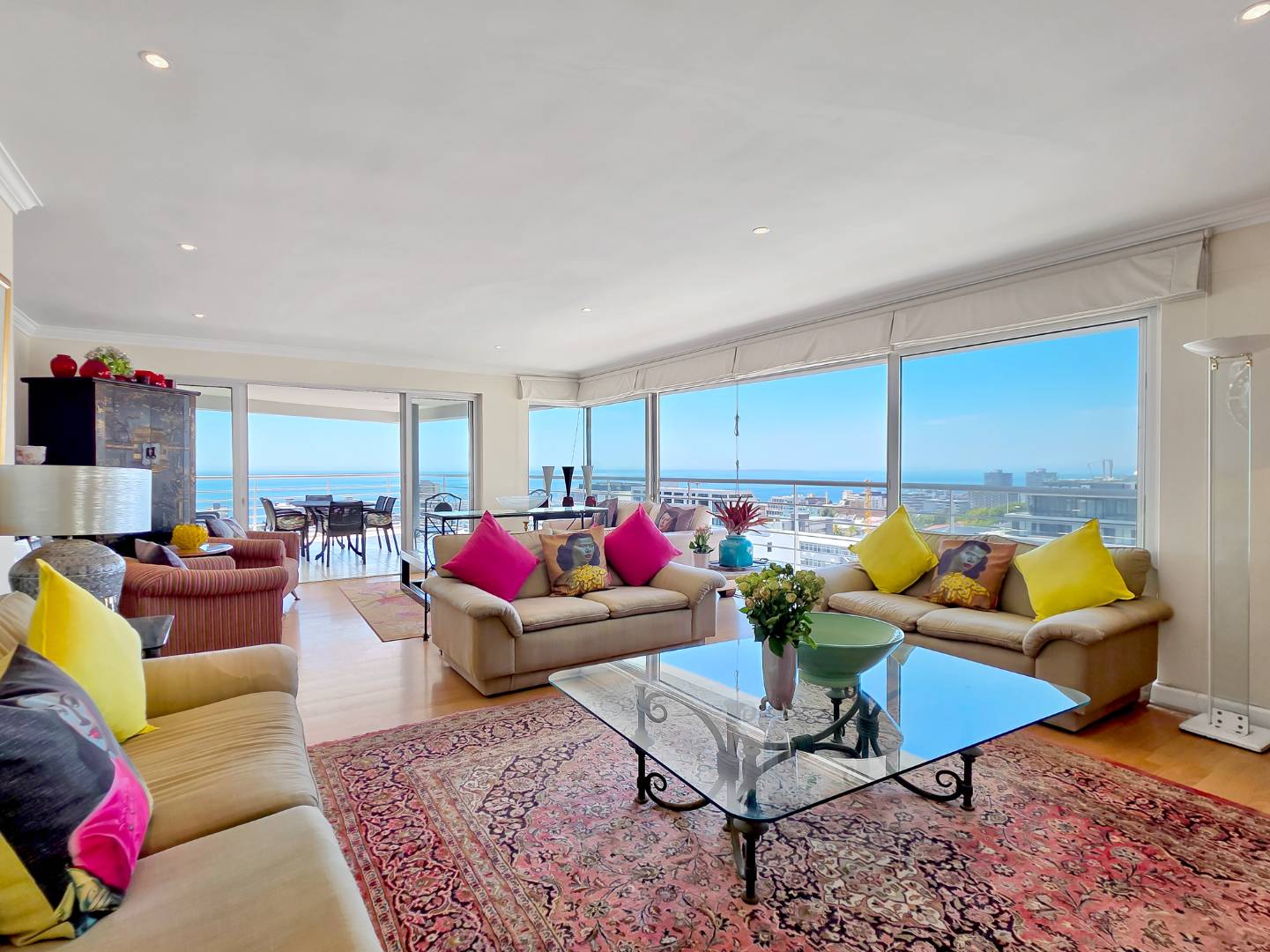 Floor to ceiling windows showcase the amazing views and both main bedroom and lounge areas lead to the patio.
