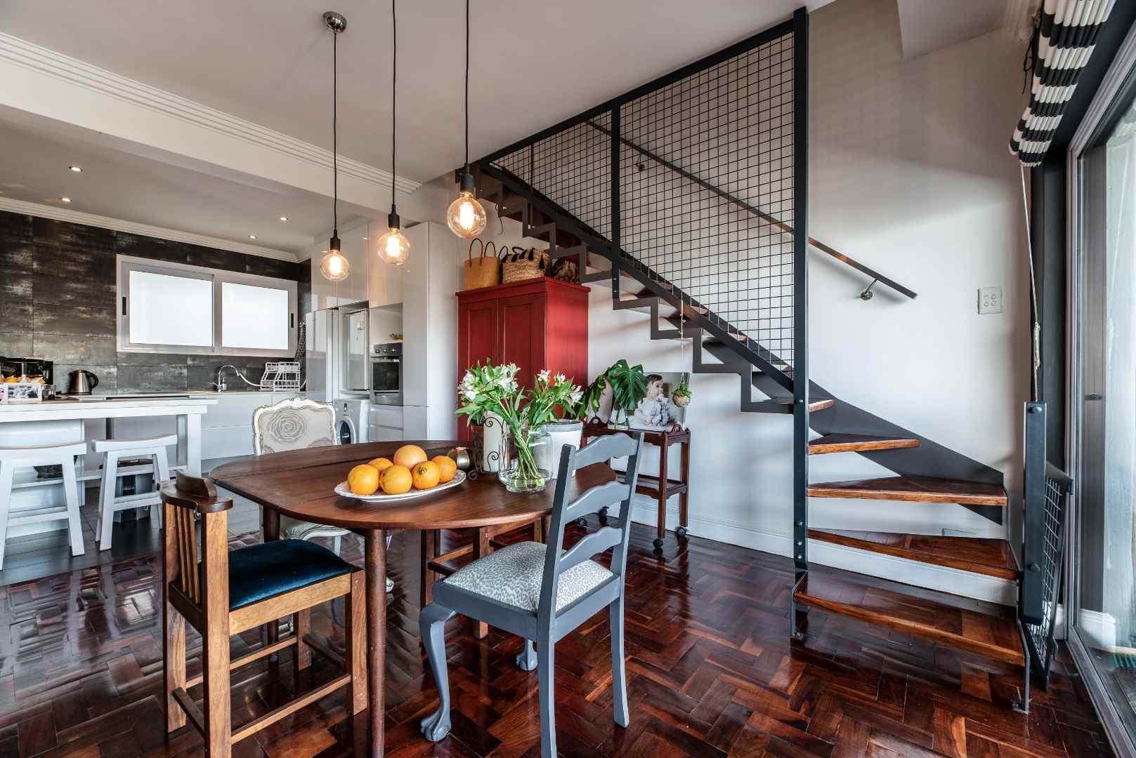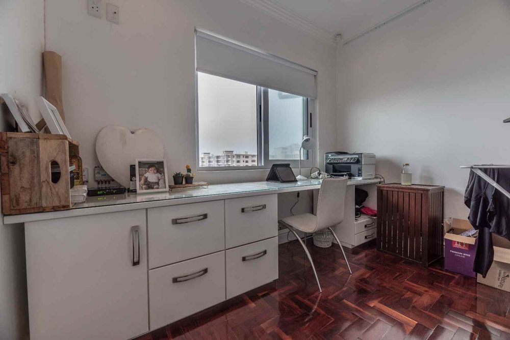 Three bedroom apartment to rent in Sea Point. Modern and trendy apartment with open plan kitchen and living room flowing out to a large balcony with stunning views of Lion's Head and the Mountain. Two good sized bedrooms downstairs and stairs leading to an upstairs 'loft'-style area with a large main bedroom with en suite.