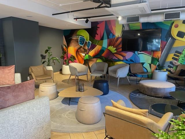 Stylish building with amenities such as rooftop pool, gym, laundry, facial recognition security. Popular restaurant Nines on the top floor, and Sonny & Irene on the groundfloor for more casual meals. Also shared workspace and outdoor braai area