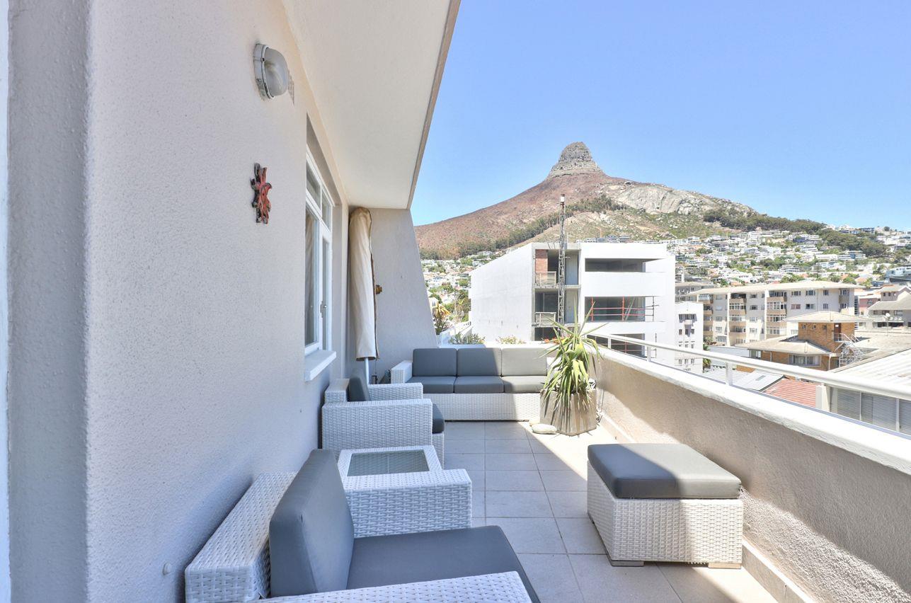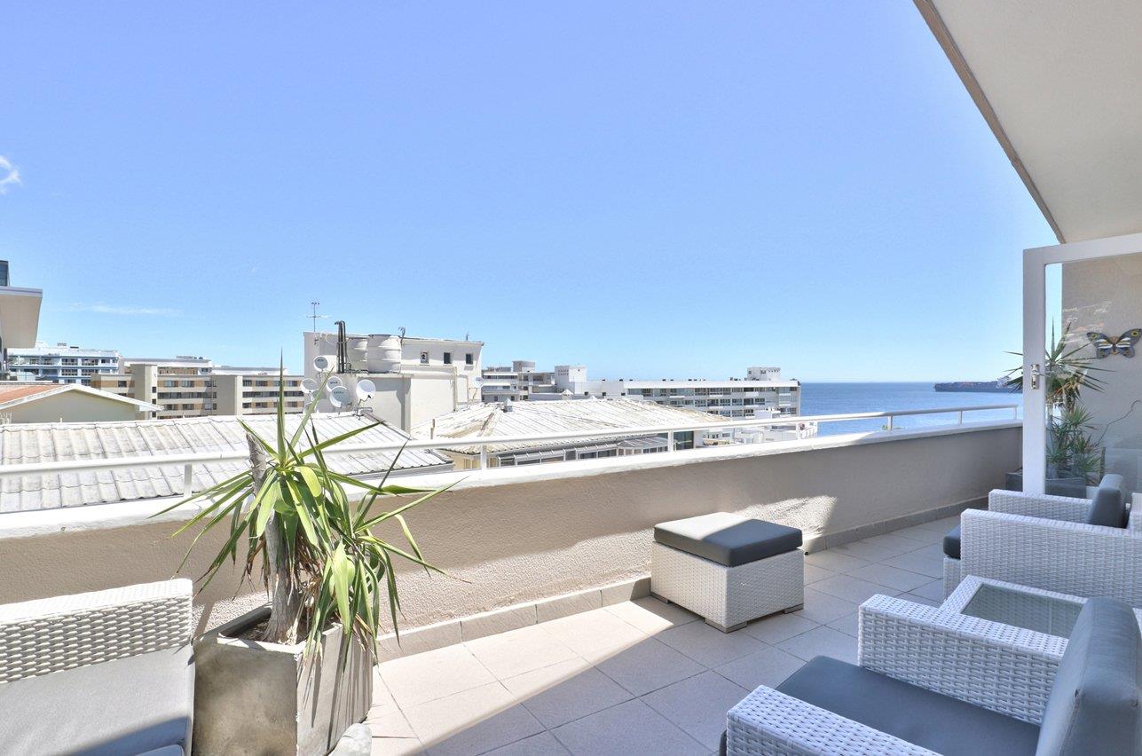 Feel on top of the world in this large 1 bedroom 8th floor flat with flow from all the rooms to a large terrace with side views of the sea and Lion's Head.
