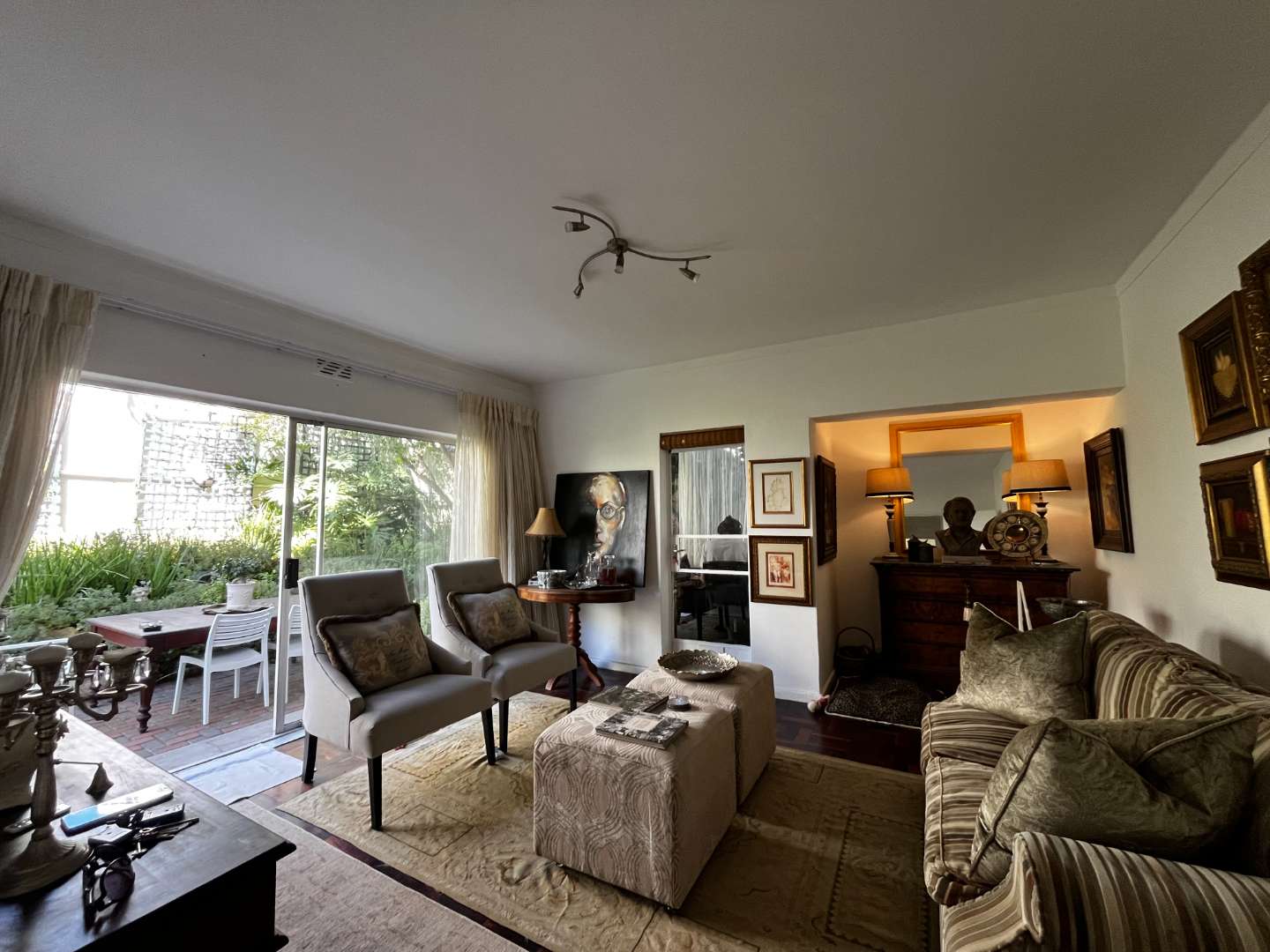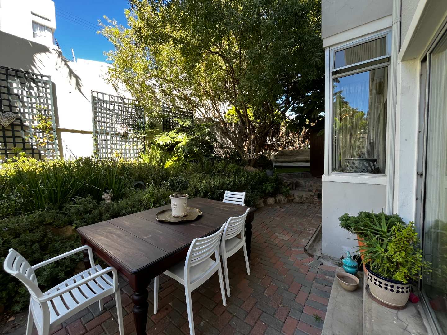 Charming and peaceful space which offers 1 bedroom (carpeted) with ample built-in cupboard space and 1 bathroom with separate bath and shower. Spacious living area which opens through glass sliding doors to a large garden and use of private storage. Enclosed balcony ideal for use as a work from home office. Kitchen with ample storage. One bathroom with separate bath tub and shower. Beautiful parquet floors and high ceilings. One off street secure parking situated in a secure complex.