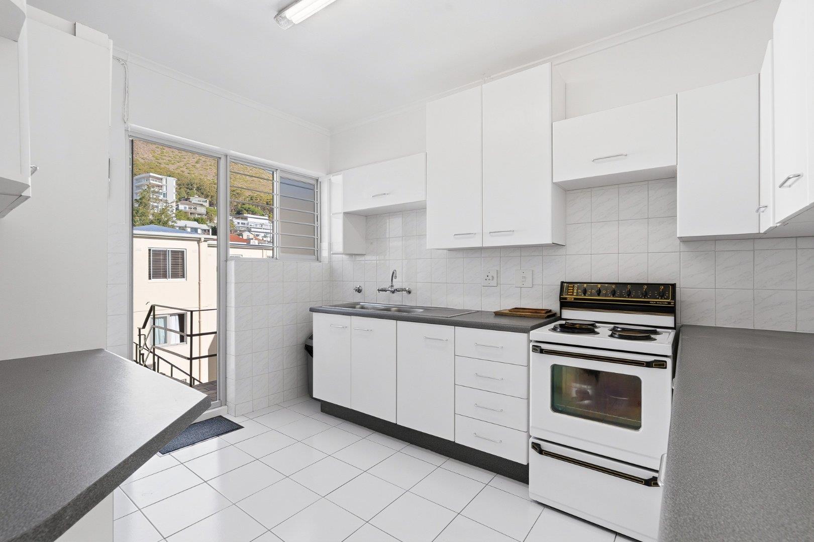 Upon entering, you'll find a spacious lounge that seamlessly connects to an enclosed balcony, providing a serene space to unwind while soaking in the beautiful sea views. The larger of the two bedrooms also opens to the balcony, ensuring you wake up to breathtaking vistas every day. The second bedroom, slightly smaller yet cozy, faces Signal Hill and offers ample cupboard space for all your storage needs.