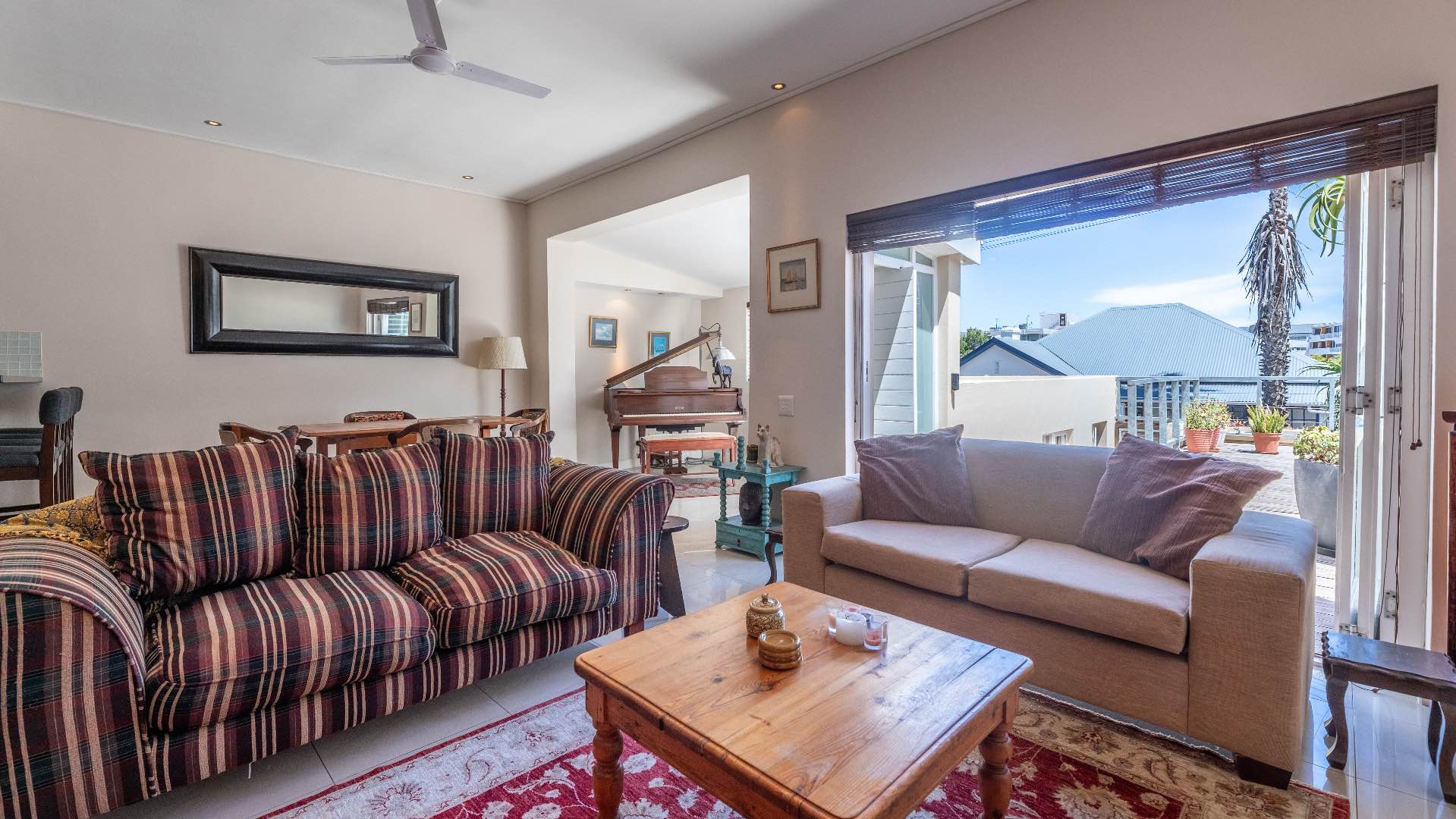Full furnished two-bedroom home with a sun deck and private courtyard garden, within walking distance of the Sea Point Promenade.
