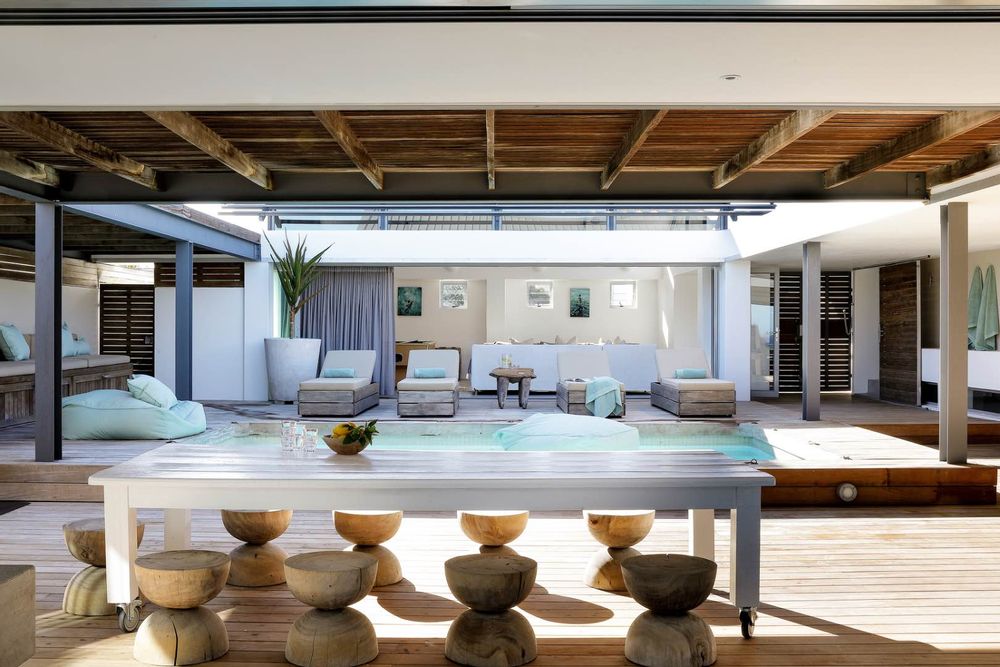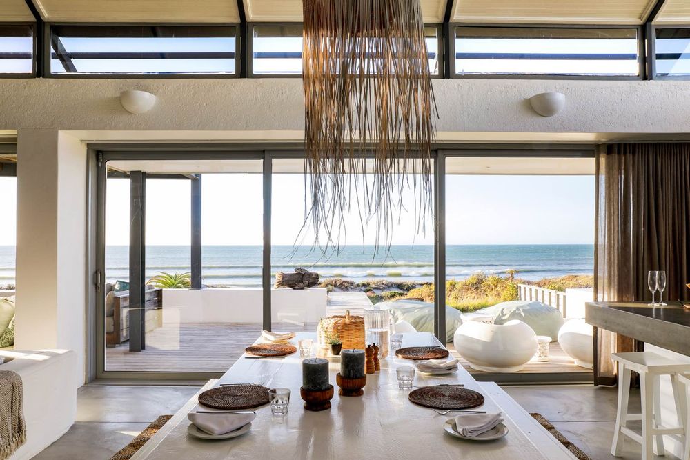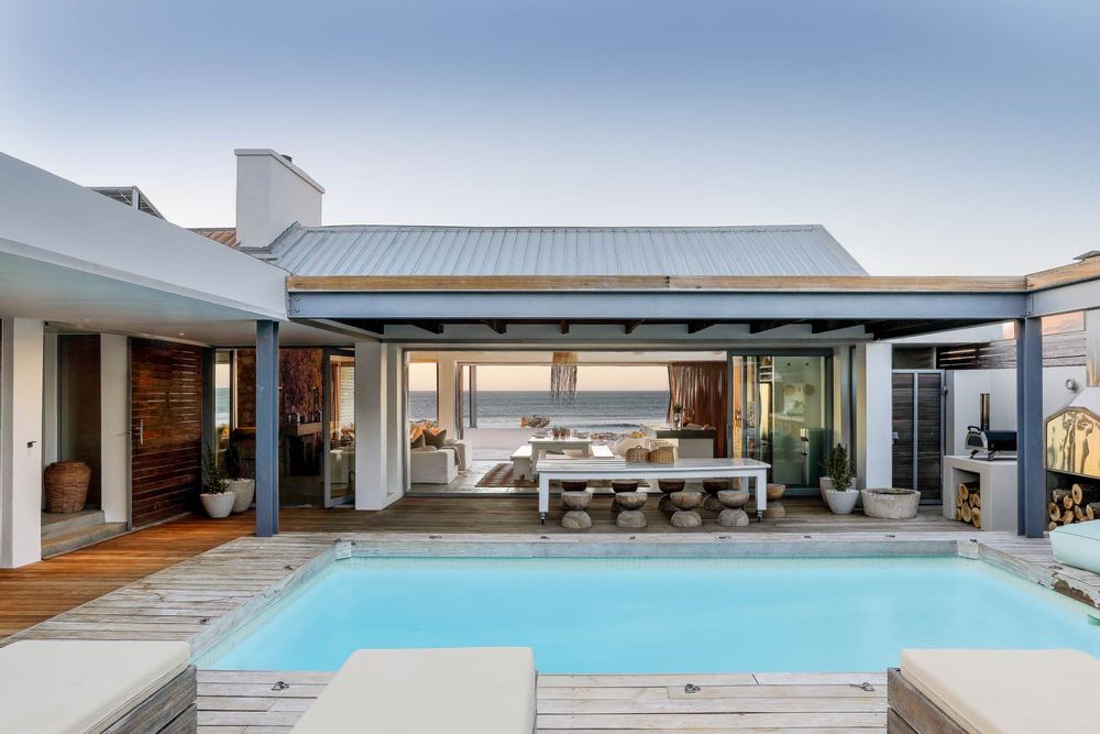 The central courtyard features a protected pool area shielded from the wind, with a braai, pizza oven, and plenty of space for lounging or tanning. One can see through to the sea from this courtyard, creating a tranquil, wind-protected haven. The front of the house faces the sea and connects via a private walkway directly to the unspoiled beach, offering endless days of fun and serenity.